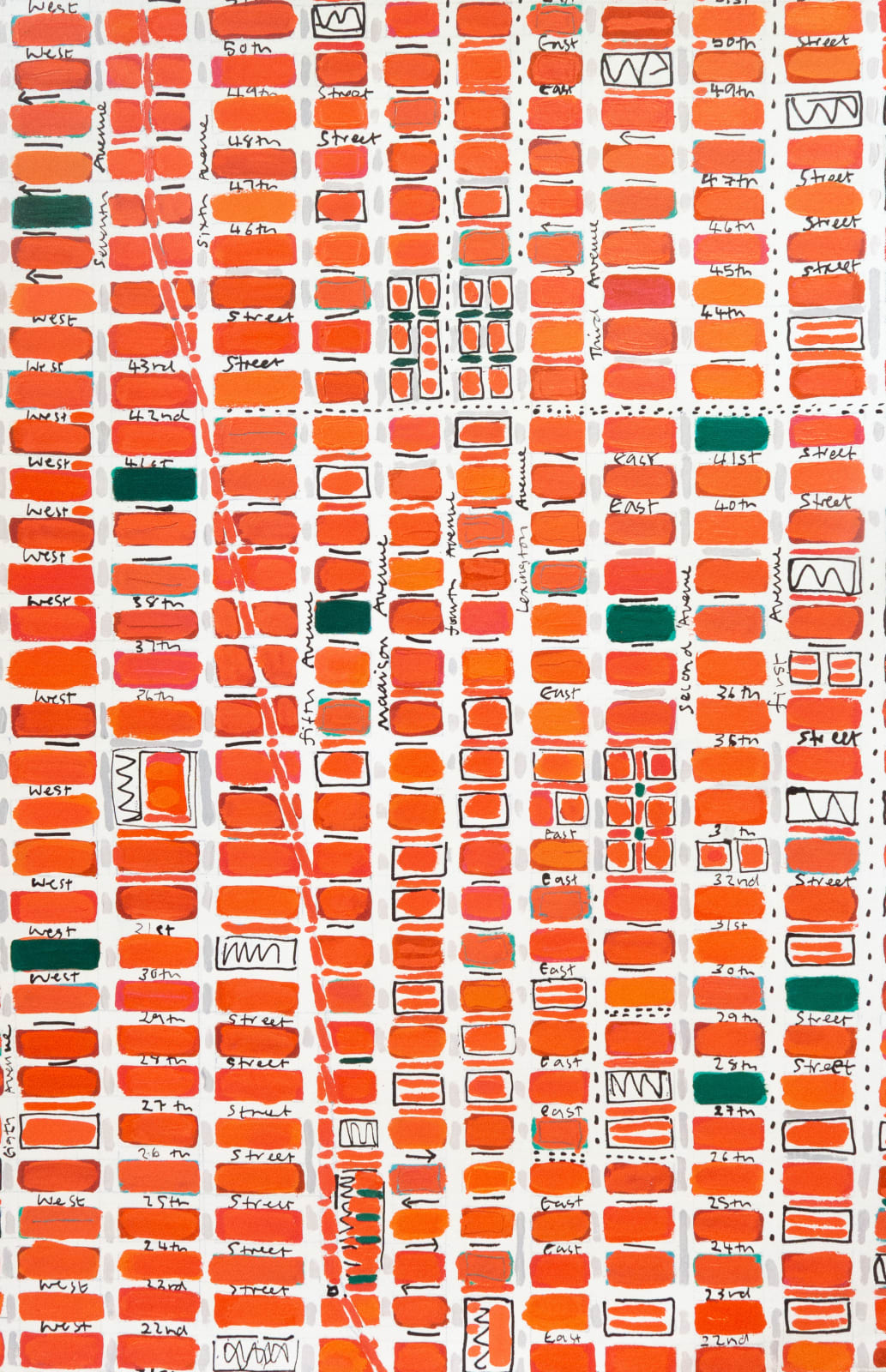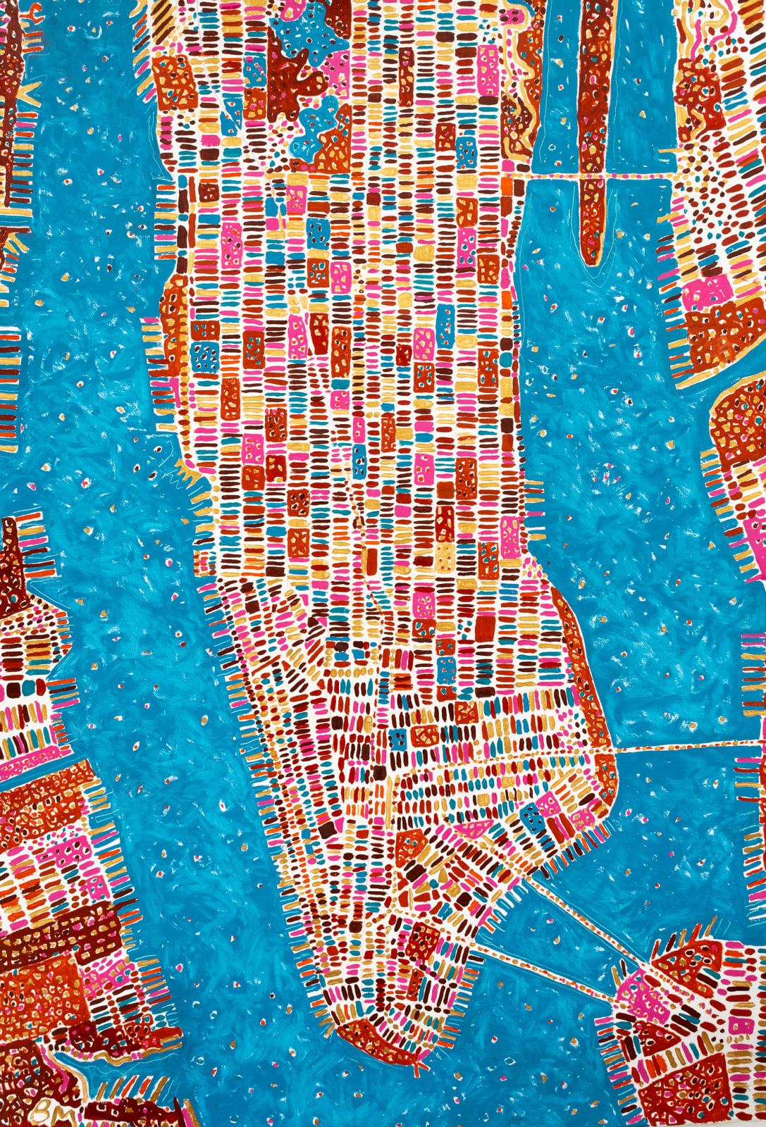 In recent years, Macfarlane has expanded her vision from the horizon to the aerial view, reimagining cityscapes through the language of maps and abstraction. Inspired by cartography and the bird’s-eye perspectives of Aboriginal painting, she transforms familiar urban grids into vibrant, rhythmic evocations of place. Her work has been exhibited widely, including at the Royal Academy, London, the Grand Palais, Paris, and in collaboration with designer Billy Reid, New York. Barbara’s work is held in major private and corporate collections across Europe, North America, and Asia.